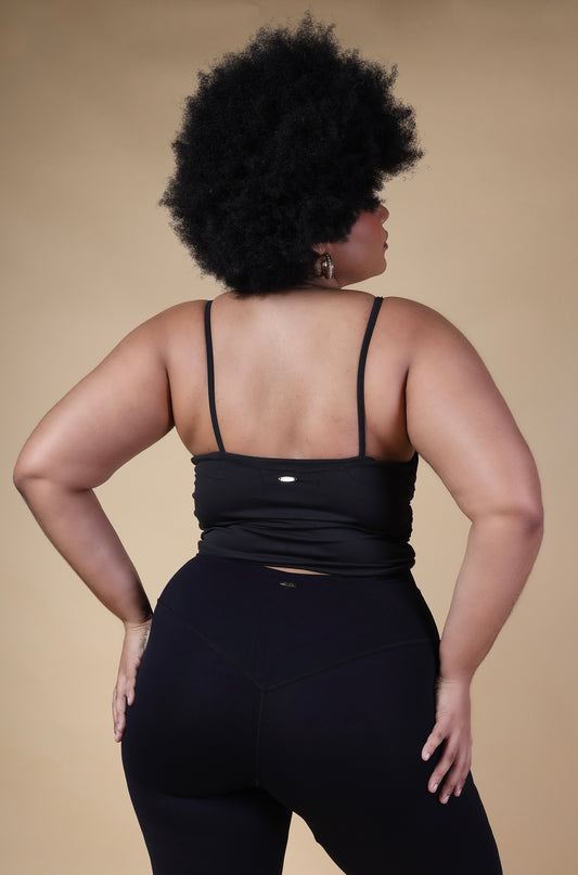 Halo Spaghetti Tank Top - Black